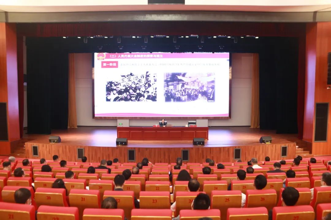 3月20日上午,汕尾市人大常委会党组副书记、副主任林军同志到市委党校为2023年县处级干部进修班、2023年中青年干部培训一班全体学员以及市人大机关副科级以上干部作题为《深入学习贯彻习近平总书记关于坚持和完善人民代表大会制度的重要思想 更好把制度优势转化为治理效能》专题讲座。市委党校常务副校长刘佑利同志主持。