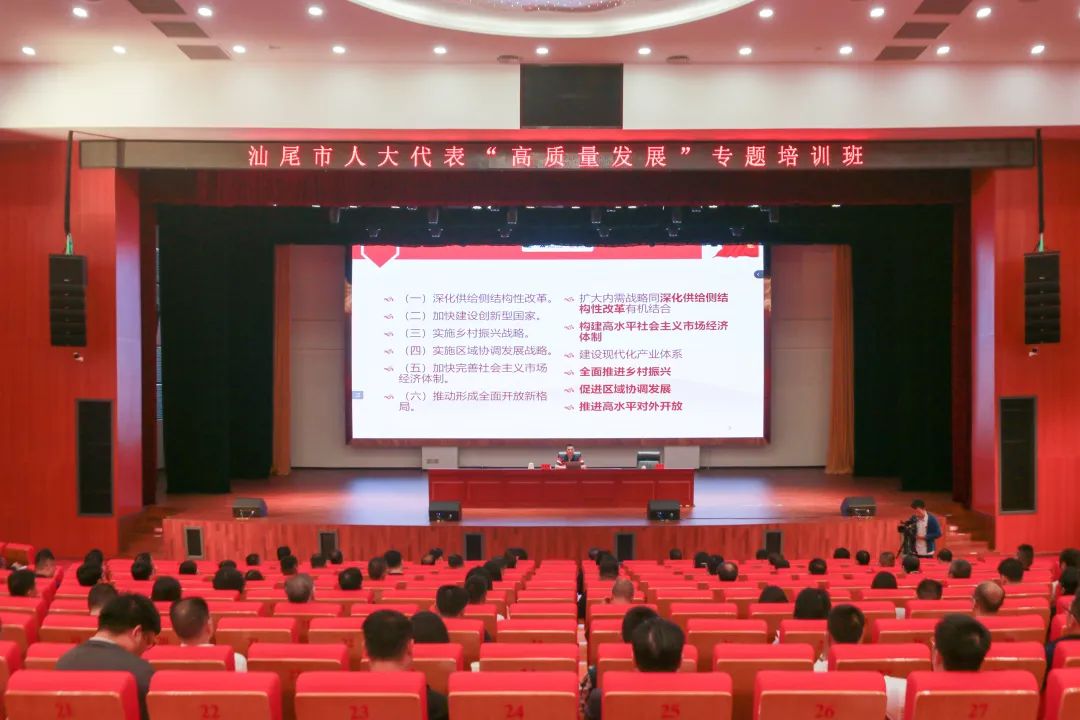 林少文围绕全面推进“百县千镇万村高质量发展工程”作专题学习辅导,以“为什么要推进‘百千万工程’”“如何推进‘百千万工程’”“怎样参与‘百千万工程’”三个方面为切入口,紧扣我市发展实际,多方位、多角度、多层面阐述推进“百千万工程”、实现汕尾高质量发展的重要性以及做好发展、建设、治理三篇文章,扎实推进党建引领“三六九”工程的发展路径,为充分发挥人大代表作用,助力推进“百千万工程”指明了方向、明确了工作重点。培训班还邀请省委党校教授彭春华作“贯彻新发展理念,建设现代化经济体系”专题学习辅导。