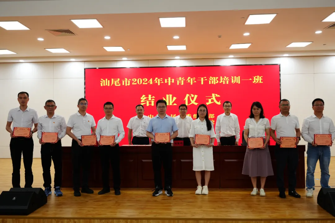 4月30日,汕尾市2024年中青年干部培训一班结业式在市委党校举行,市委党校常务副校长刘佑利、教育长李永军、校委林振华出席结业式并为学员颁发结业证书。