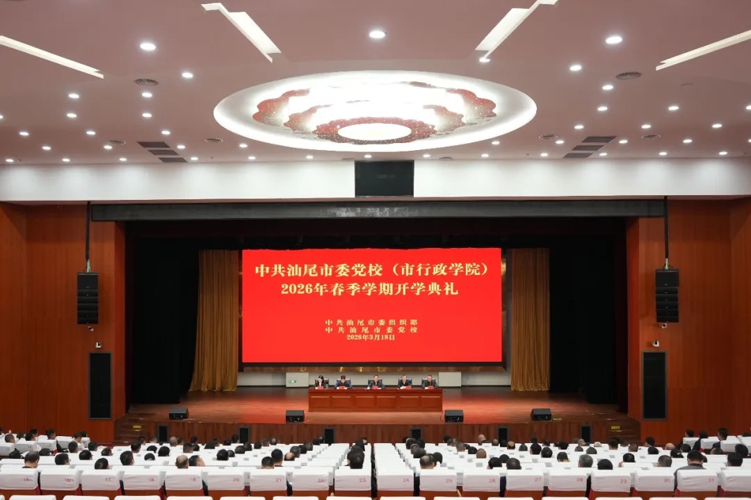 3月18日,汕尾市委党校(汕尾市行政学院)举行2026年春季学期开学典礼。市委党校(市行政学院)领导班子成员出席;2026年县处级干部进修班(第1期),2026年中青年干部培训一班,市管干部学习贯彻党的二十届四中全会精神和学习贯彻习近平总书记视察广东、出席第十五届全国运动会开幕式重要讲话重要指示精神专题研讨班(第1期)全体学员参加。