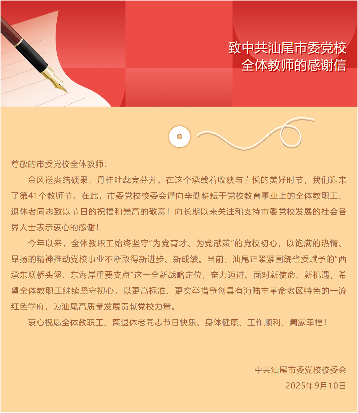 致中共汕尾市委党校全体教师的感谢信